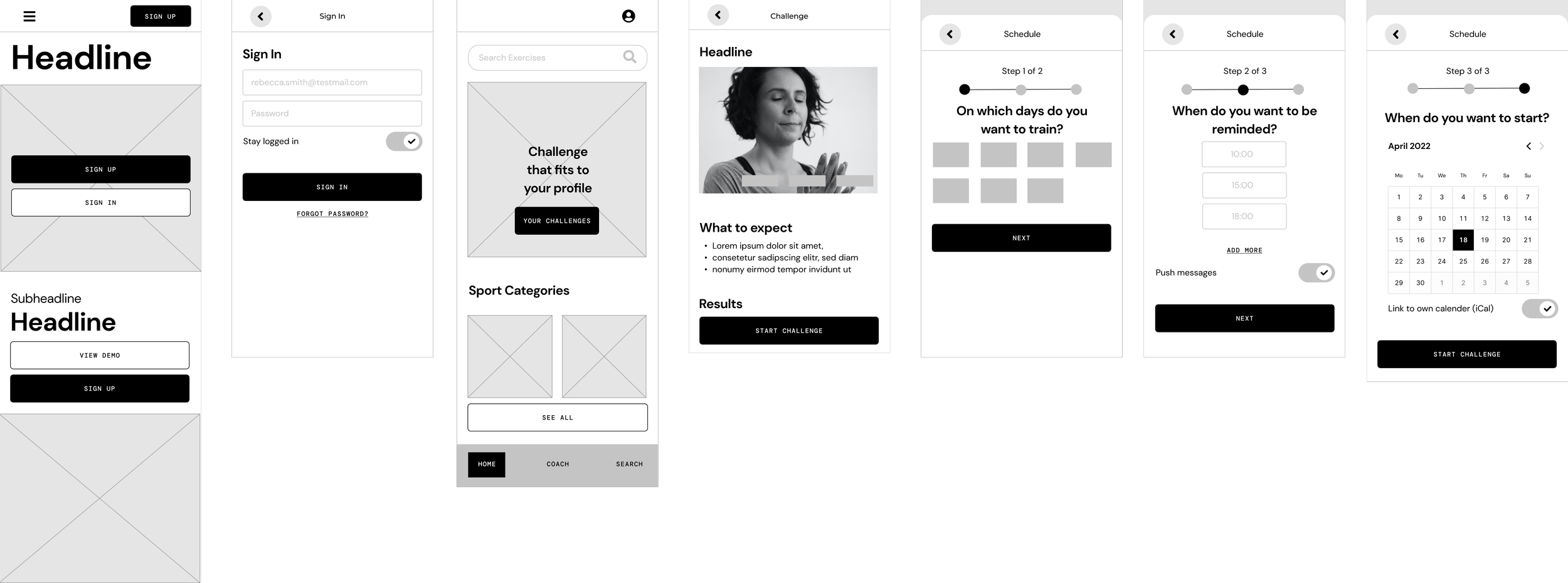 Now that I know what features my persona will perform, it is time to create 3 user flows with focus on search exercises, schedule & finish a challenge.